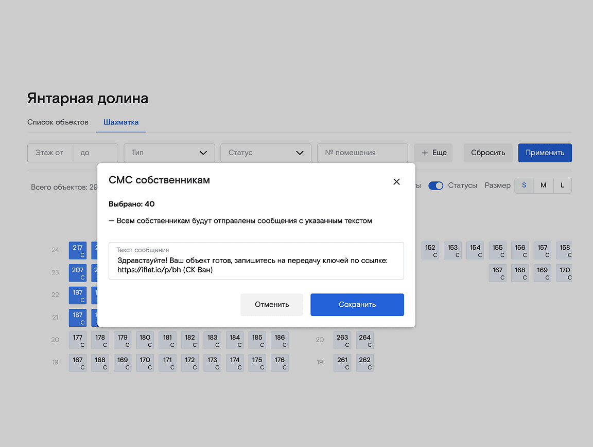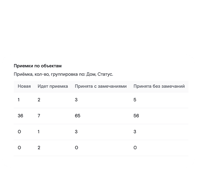 Использование сервиса открыло новые горизонты для обеих сторон процесса передачи жилья — застройщика и дольщиков. Благодаря полному контролю над процессом передачи квартир девелопер может видеть объективную статистику о ходе реализации проекта в формате дашбордов, а также все статусы работ по объектам в наглядном виде (например, в форме шахматки). Все задачи теперь распределены по ответственным прямо в системе, и в любой момент можно выгрузить документ из шаблона со всей информацией по этапам работ. Жильцы также оценили уровень сервиса и комфорта, предложенные застройщиком. Все коммуникации с застройщиком могут вестись в электронном виде, нет необходимости приходить лично или звонить, а вся информация по статусам работ с объектом наглядно отображается в личном кабинете клиента.